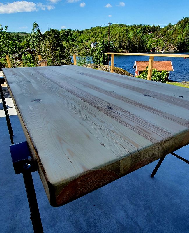 Rensing og avretting av gammelt spisebord i heltre